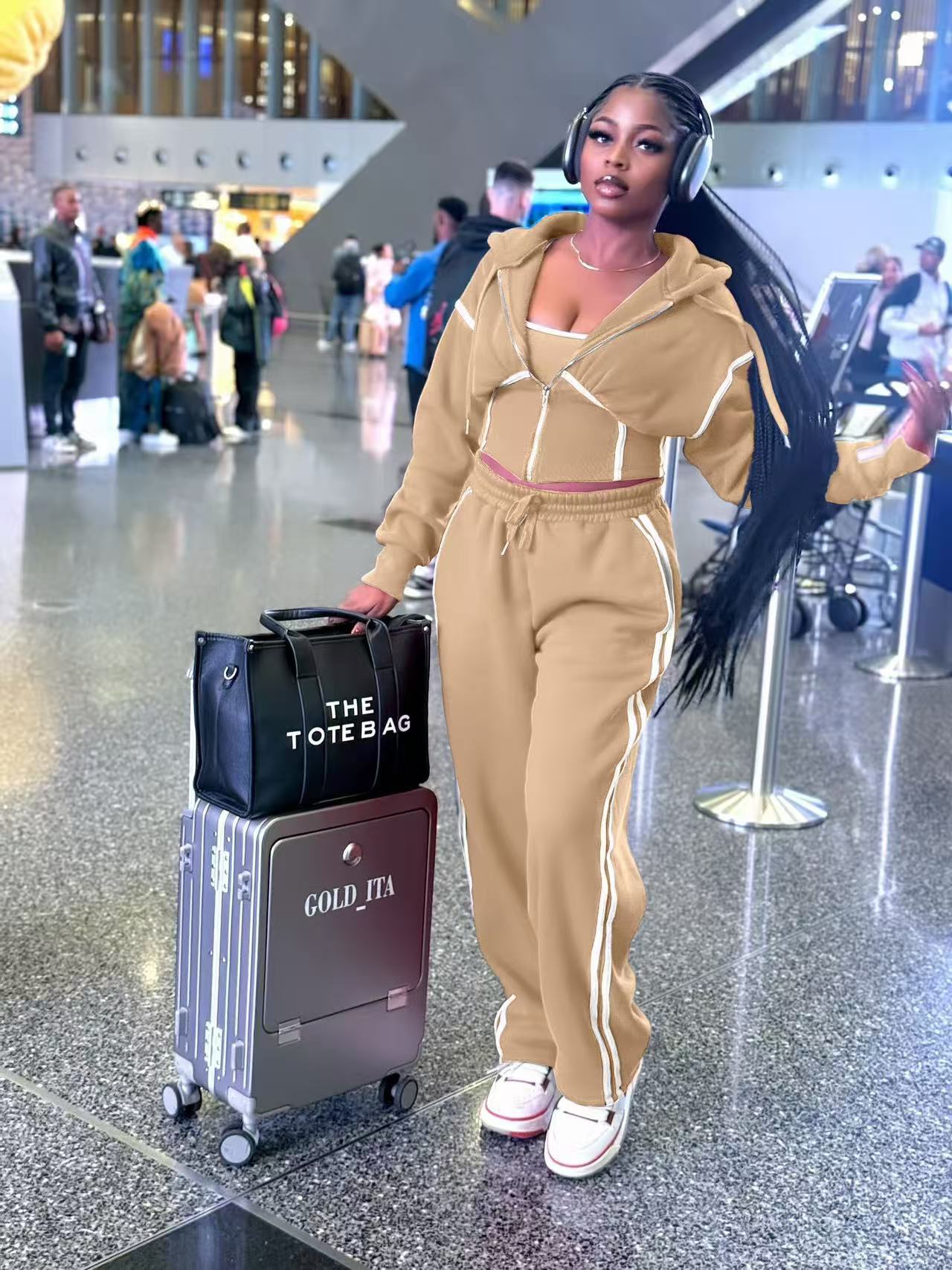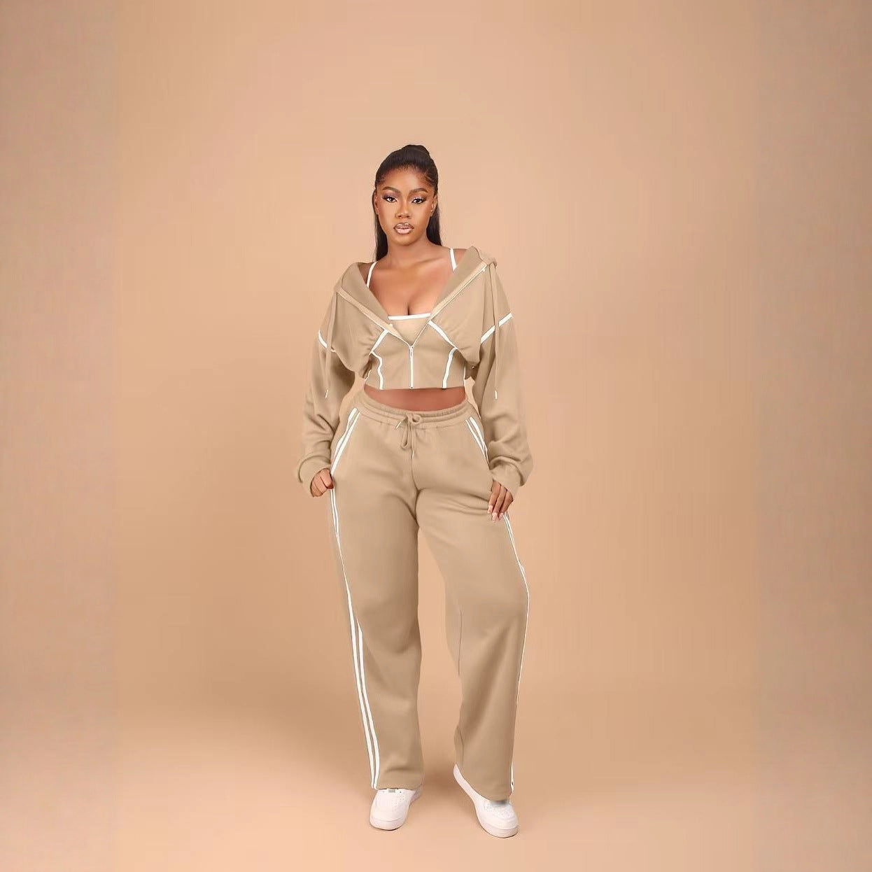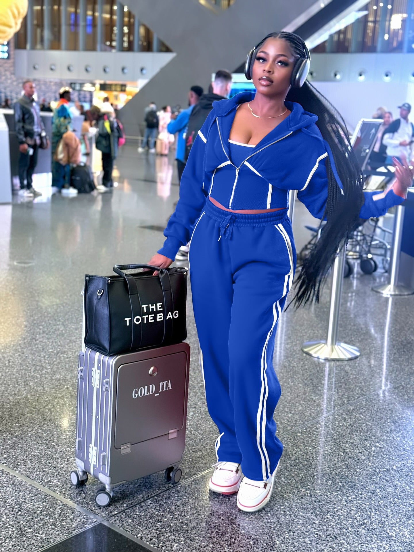 Fashionable Patchwork Hooded Sweatshirt Sports Casual Three-piece Suit