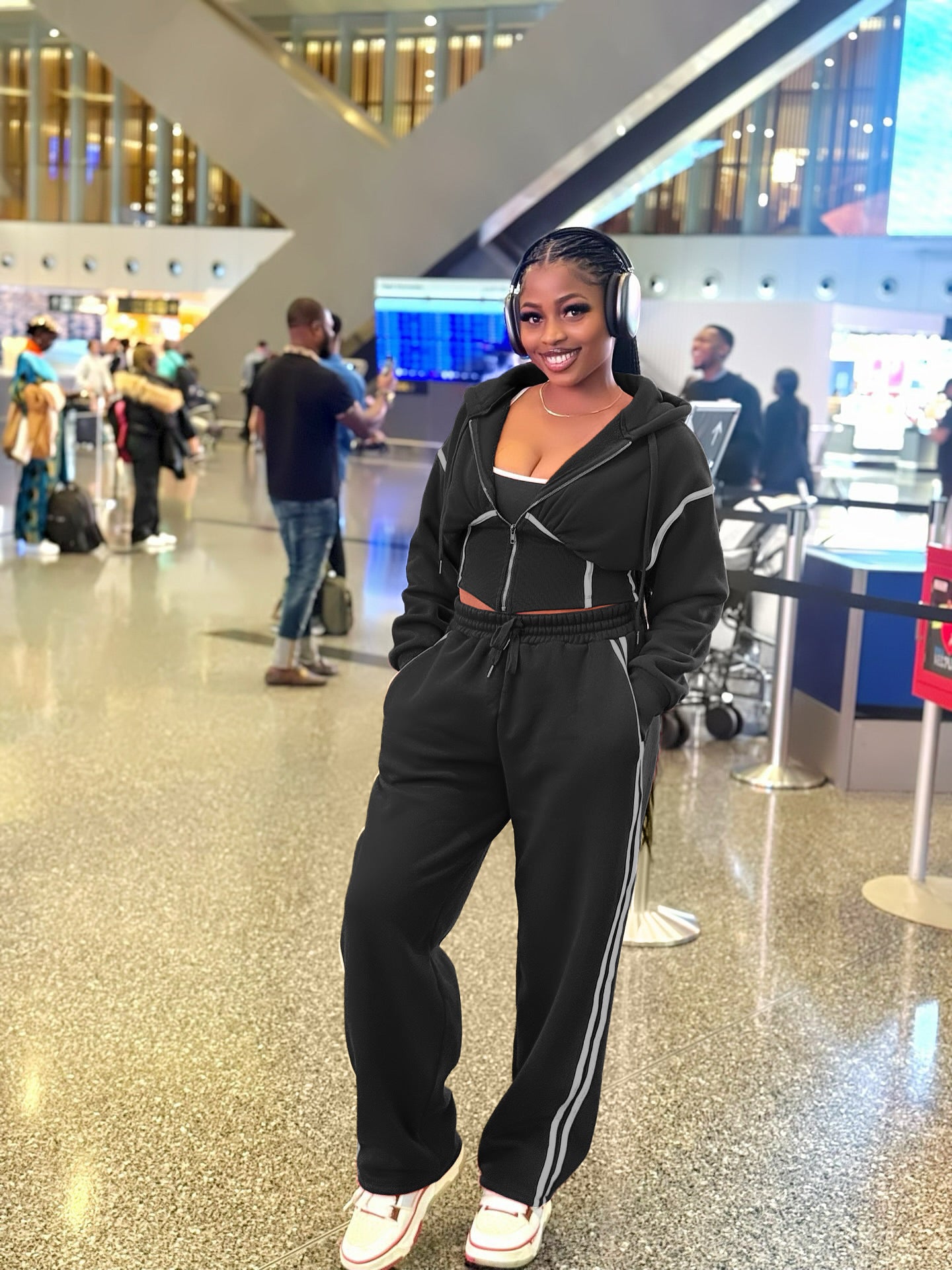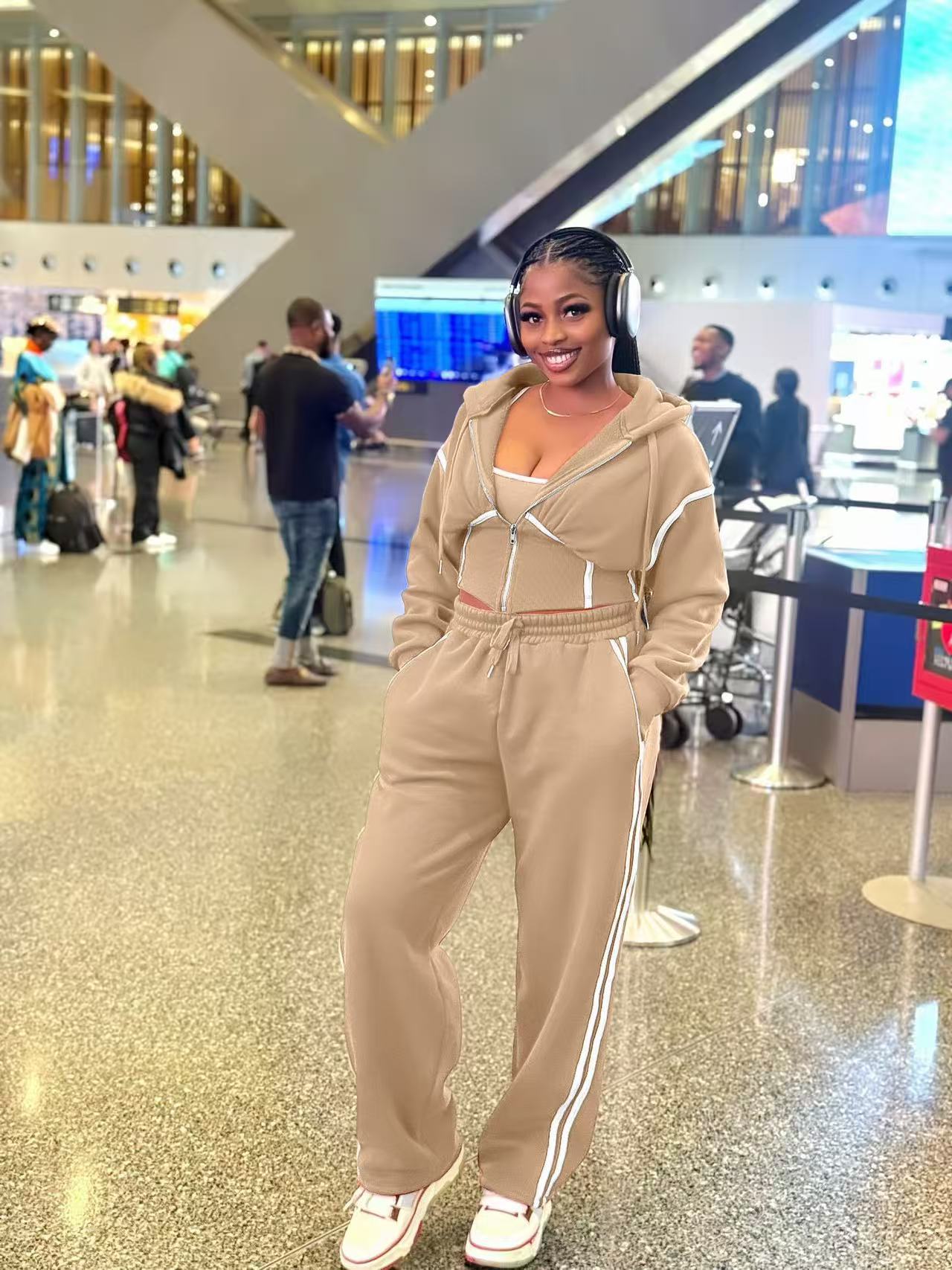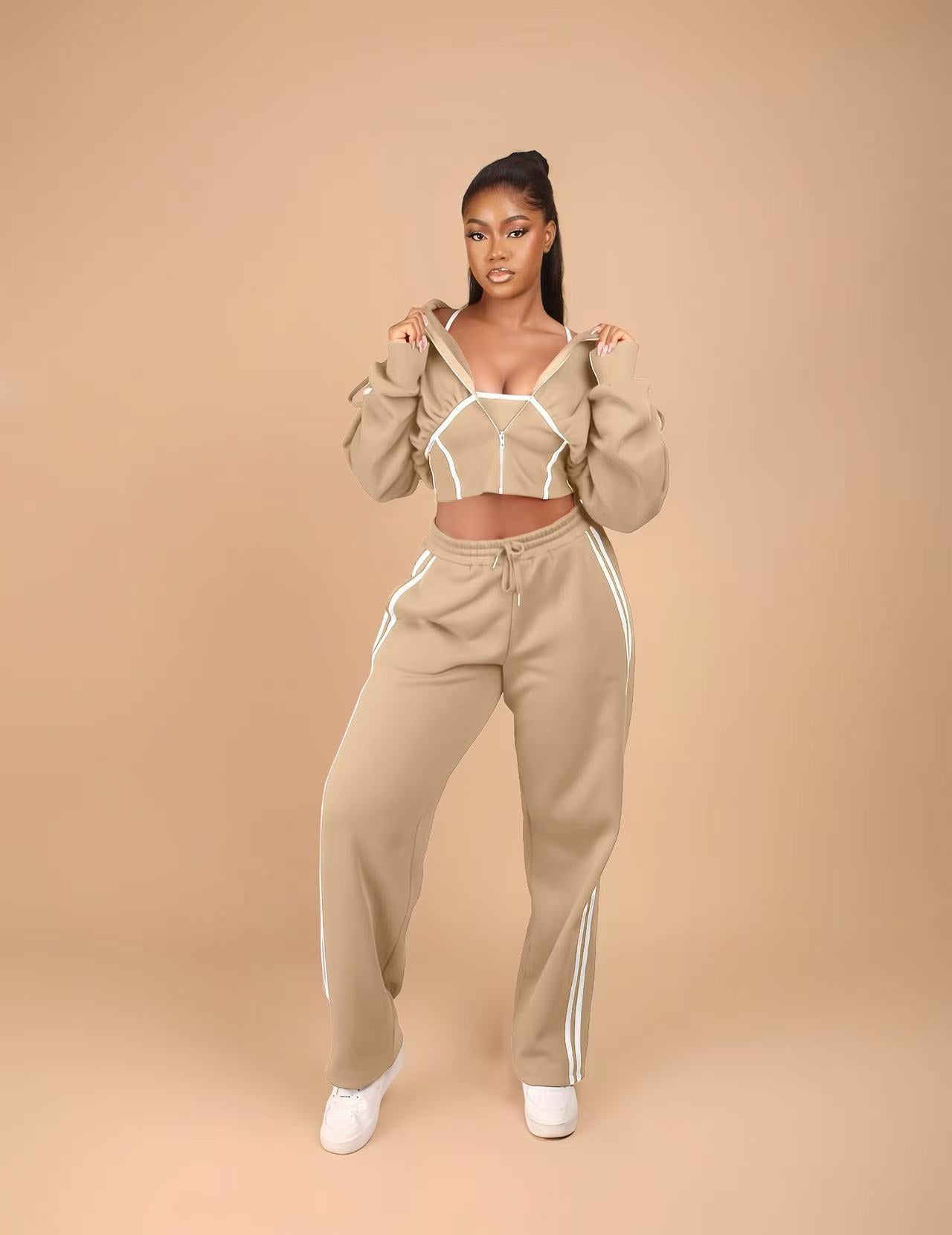 Fashionable Patchwork Hooded Sweatshirt Sports Casual Three-piece Suit